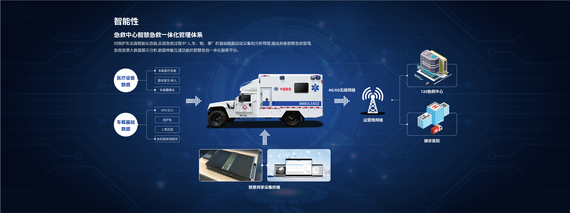 救護車基本配置:長排菱形燈總成;折疊擔架;氧氣瓶;浮標式氧氣吸入器;藥品器械柜總成;中隔板總成;紫外線消毒燈;室內照明燈;救…